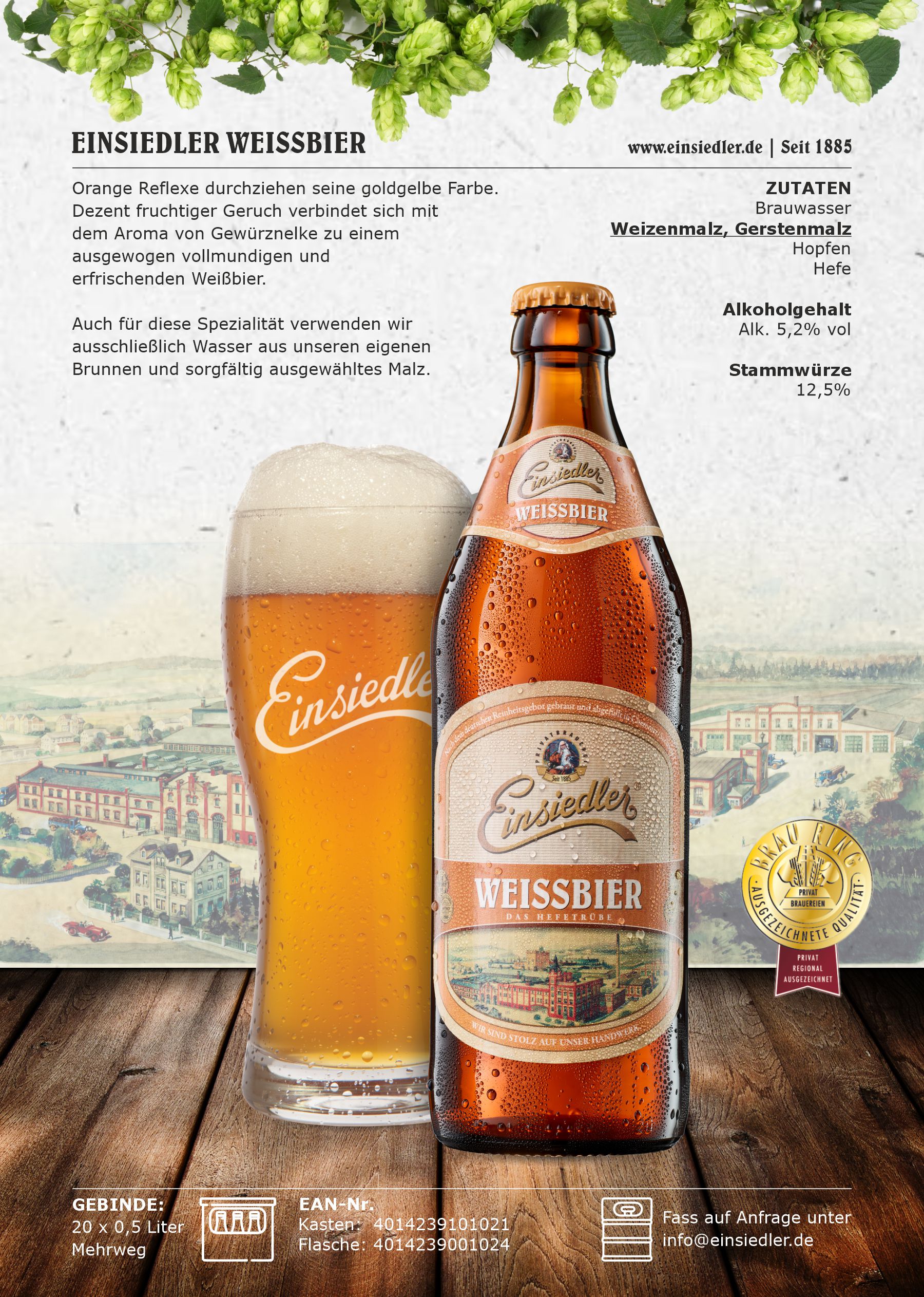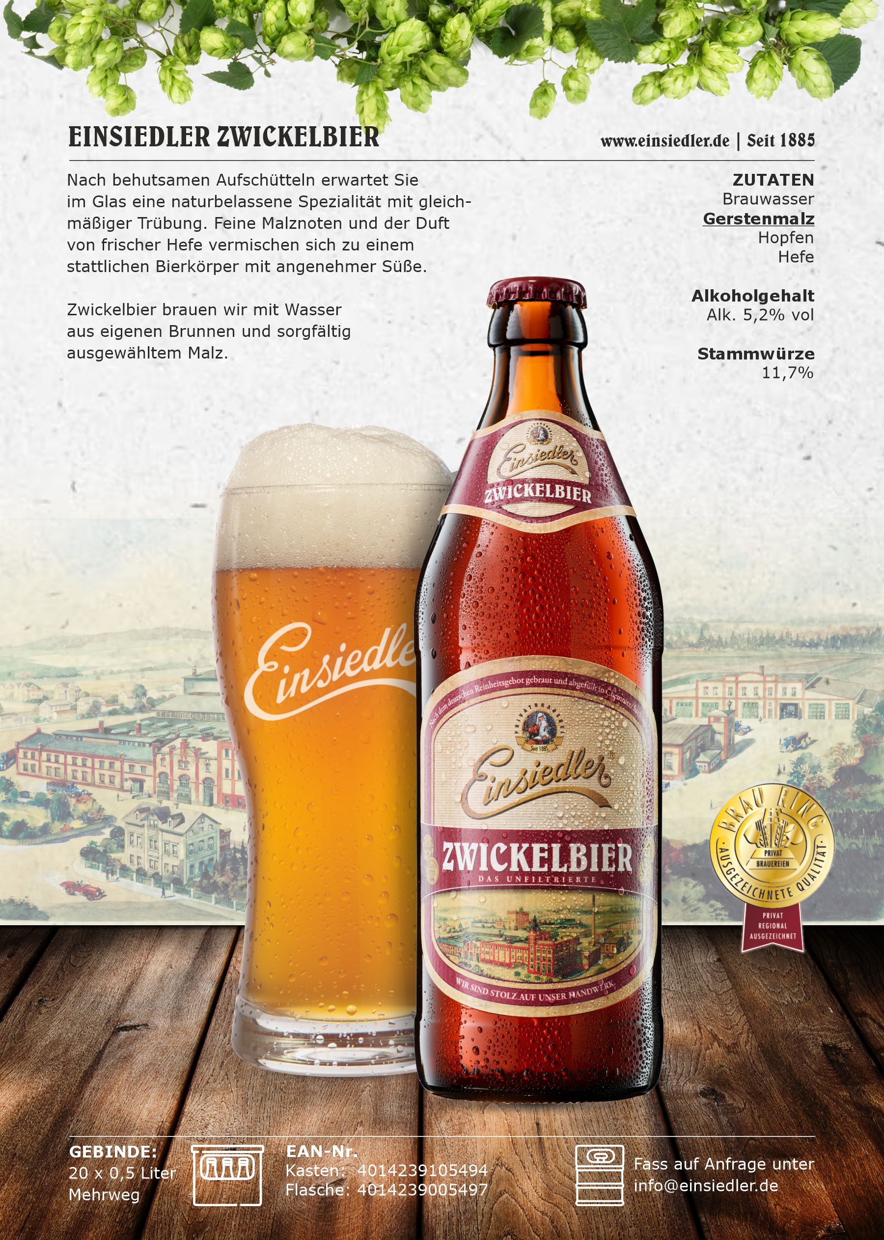 Die Geschichte unserer traditionsreichen Privatbrauerei begann am 29. August 1885. Als “Einsiedler Brauhaus, Emil Schwalbe” gegründet, erlebte sie eine so wechselvolle Entwicklung wie Deutschland selbst.
